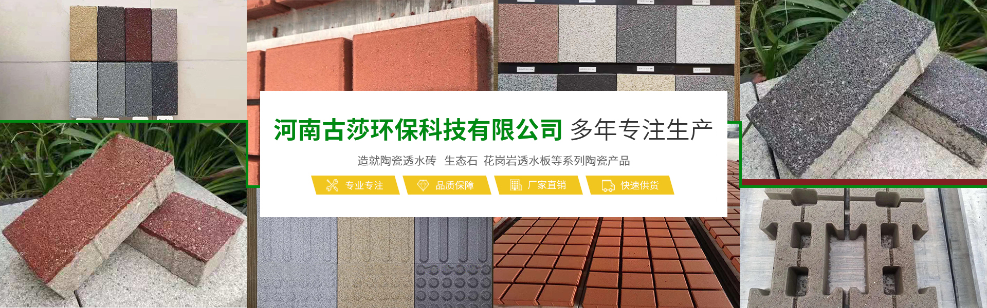 河南古莎環保科技有限公司總坐落于交通樞紐城市鄭州,是一家具備研發、生產、銷售能力為一體的綜合性現代化陶瓷企業。本公司專業生產經營生態陶瓷透水磚、生態鋪石、PC仿石材透水磚、PC仿石材景墻磚、普通透水磚、燒結磚等系列產品,完善的研發團隊,完善的生產流水線設備,打造完善的陶瓷企業。古莎環??萍棘F代化陶瓷企業是美化城市,改善生活環境質量的生態環保產品,可廣泛應用于公共建筑廣場、城市道路、公園、藝術景觀、廊道、房地產、別墅住宅小區、地鐵口、車站、高速公路服務區等。古莎環??萍荚谠刑沾善髽I基礎上,另拓展園林綠化、市政施工、瀝青包工包料施工、公路維修等業務板塊,專業培訓了一些園林綠化、市政施工技術人員,并有多年的施工養護經驗以及建筑工程經驗。保證市政工程施工質量以及園林綠化后期養護規范化、專業化。古莎環保科技所遵循的企業與品牌發展思路,是奠定在品質與產品應用之上。環保理念由我們共同倡導,理性思考,以推進步,感性溝通,以共建優越。古莎環保科技與大家真誠合作,攜手共進,為助力海綿城市建設,建筑高品質的綠色城市生活貢獻一份力量!